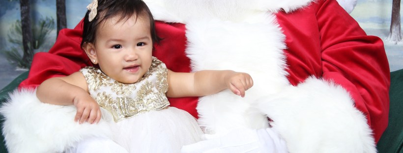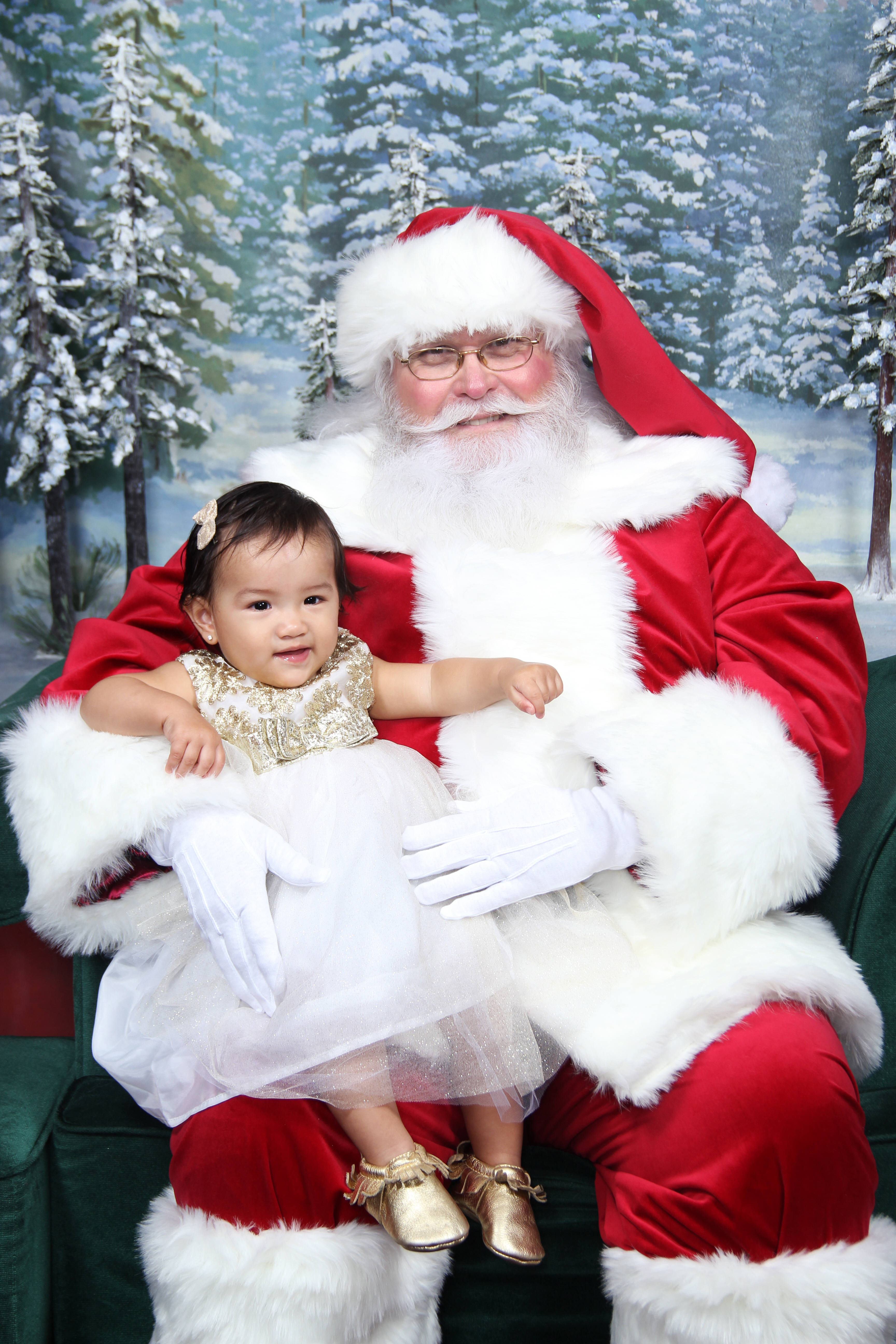 I decided to beat the crazy lines by having Huntley meet Santa right after Thanksgiving. I dressed her head to toe in gold and I thought this dress I had found a while back was just perfect! I wasn’t sure whether Huntley would be glad to see Santa or whether we would be going home with the classic crying baby photos. Luckily her first visit left us with one smiling photo as she was still unsure of what she thought of the whole ordeal. Anytime after that day, if she saw another Santa, she was not happy!