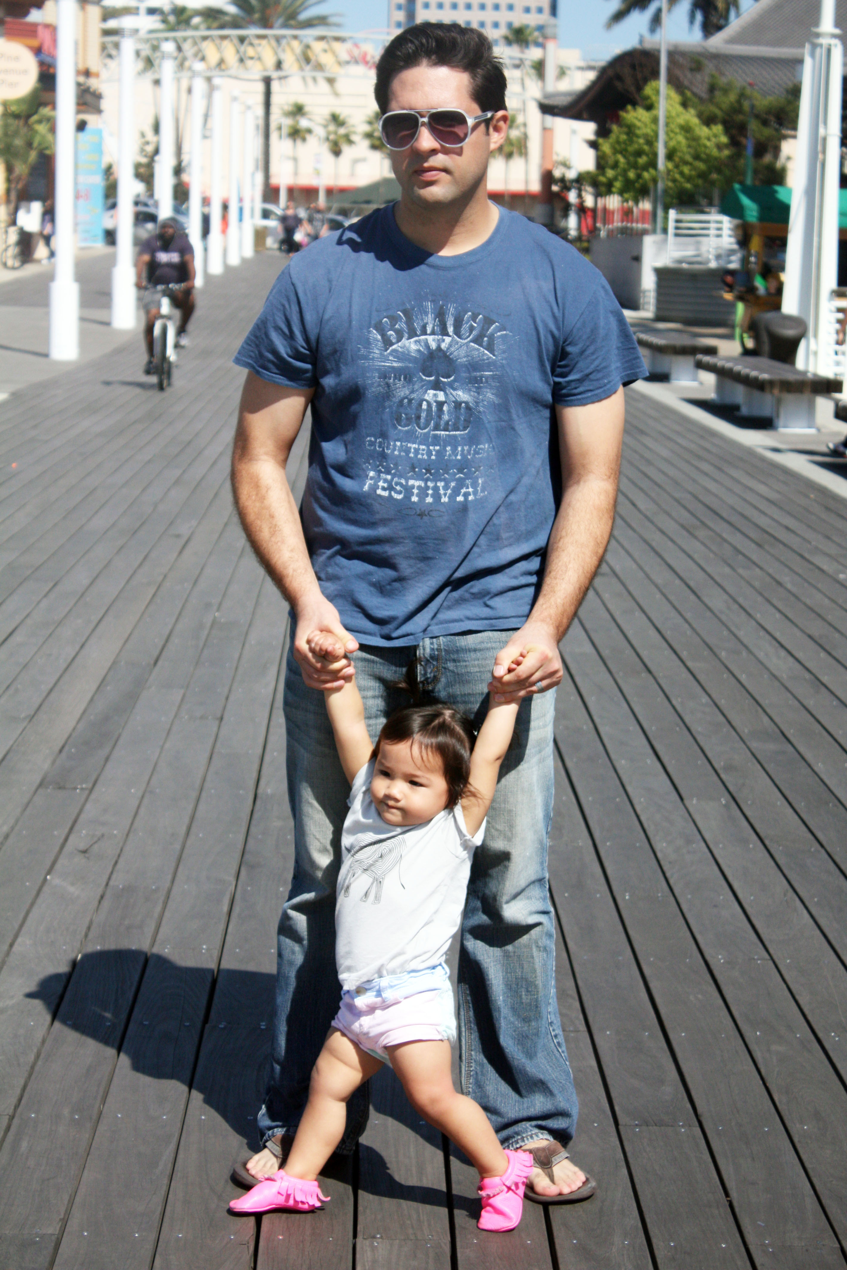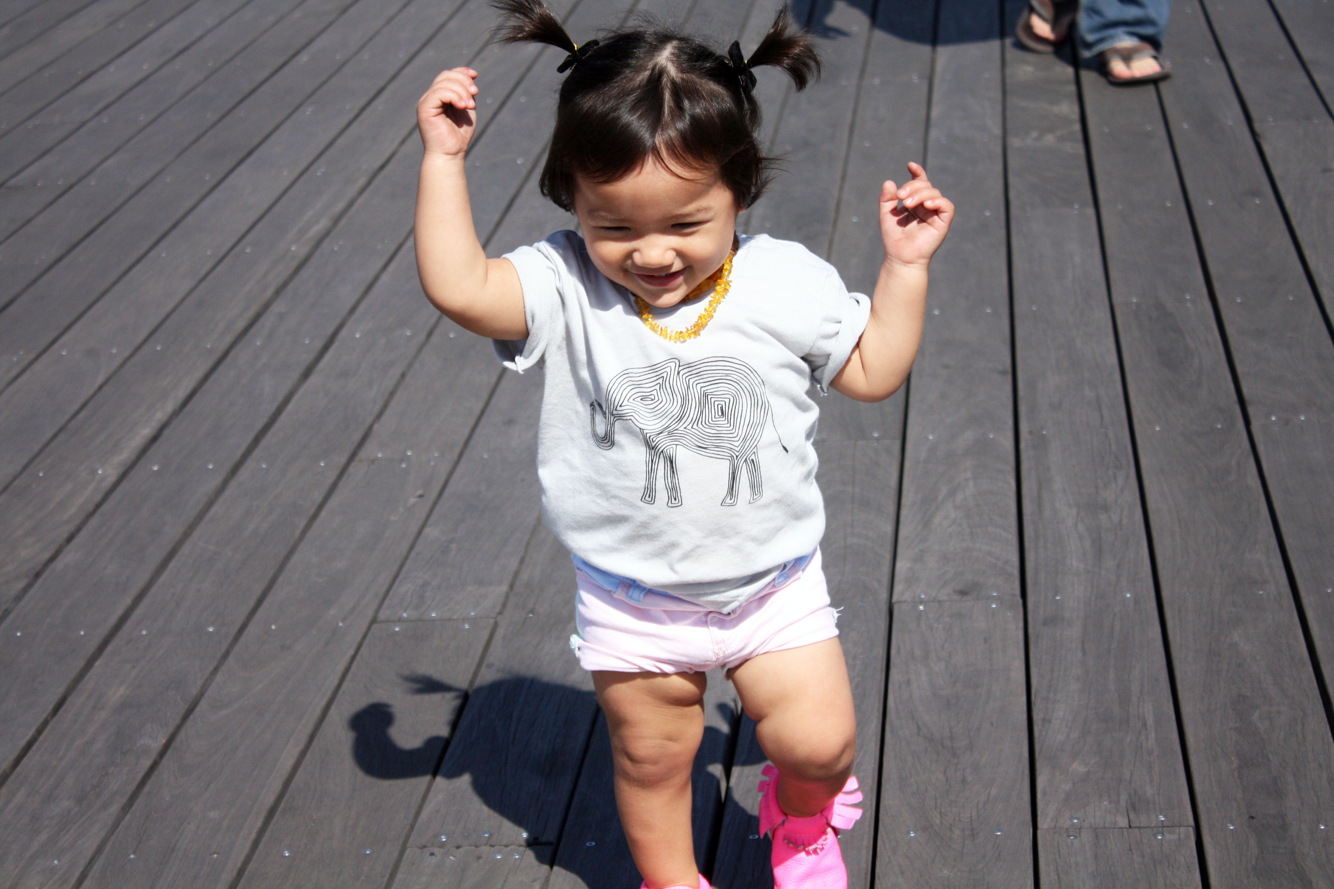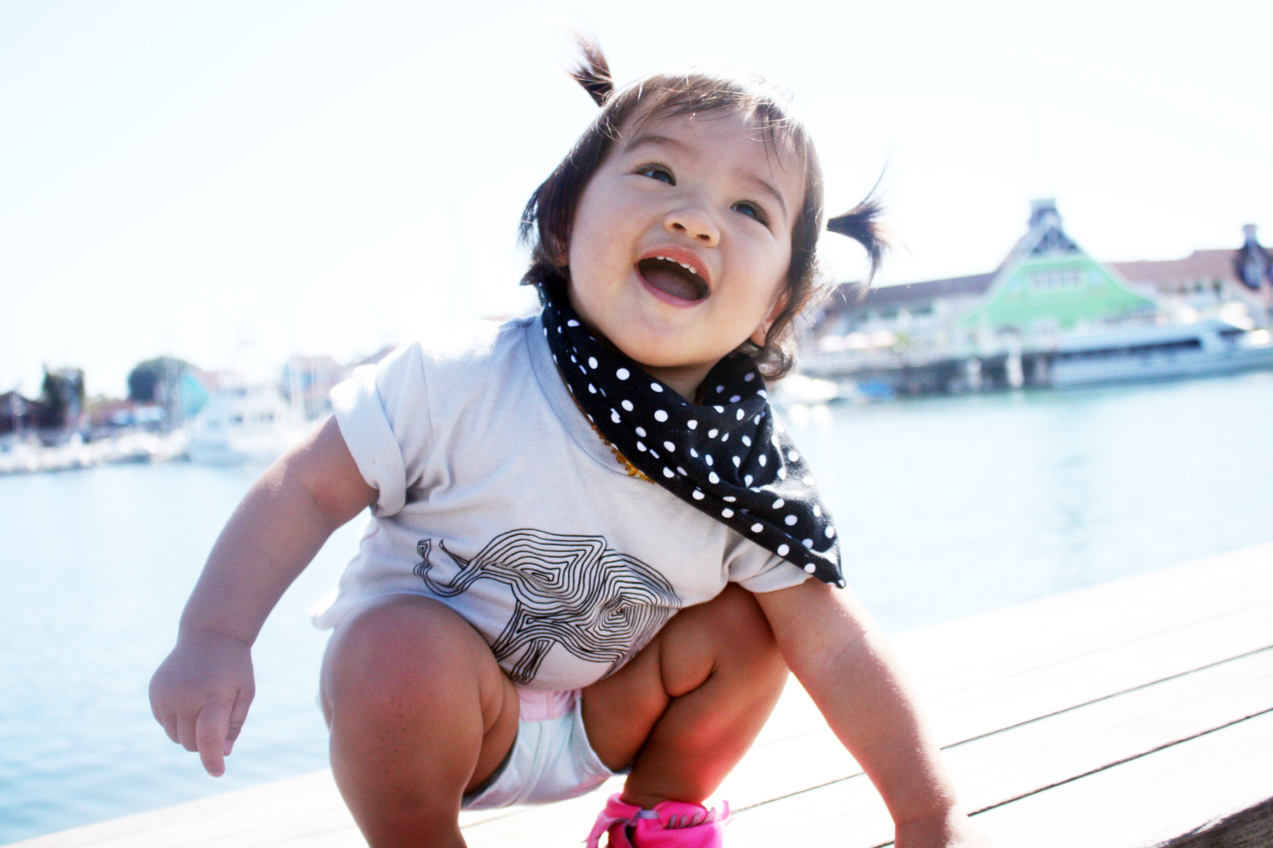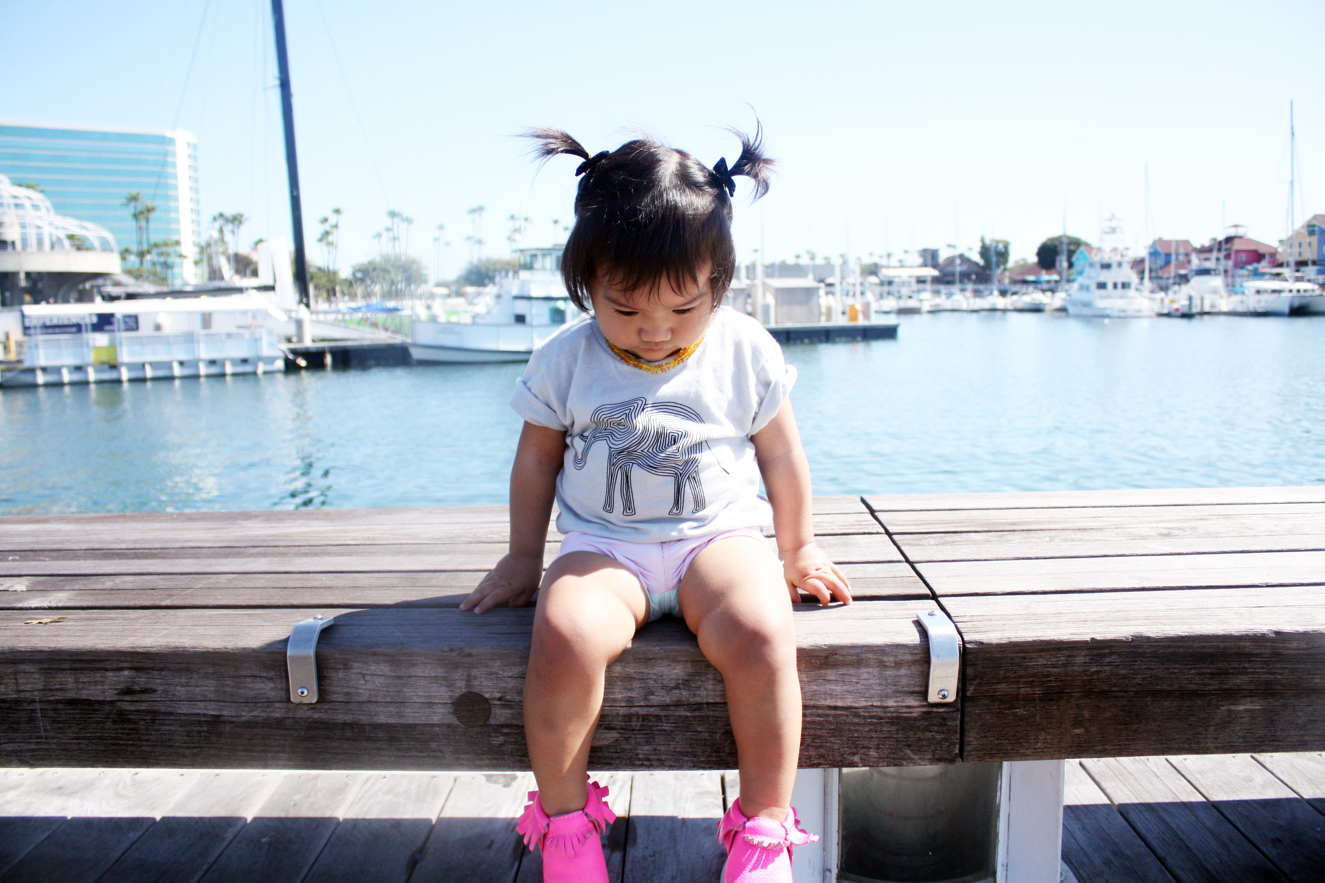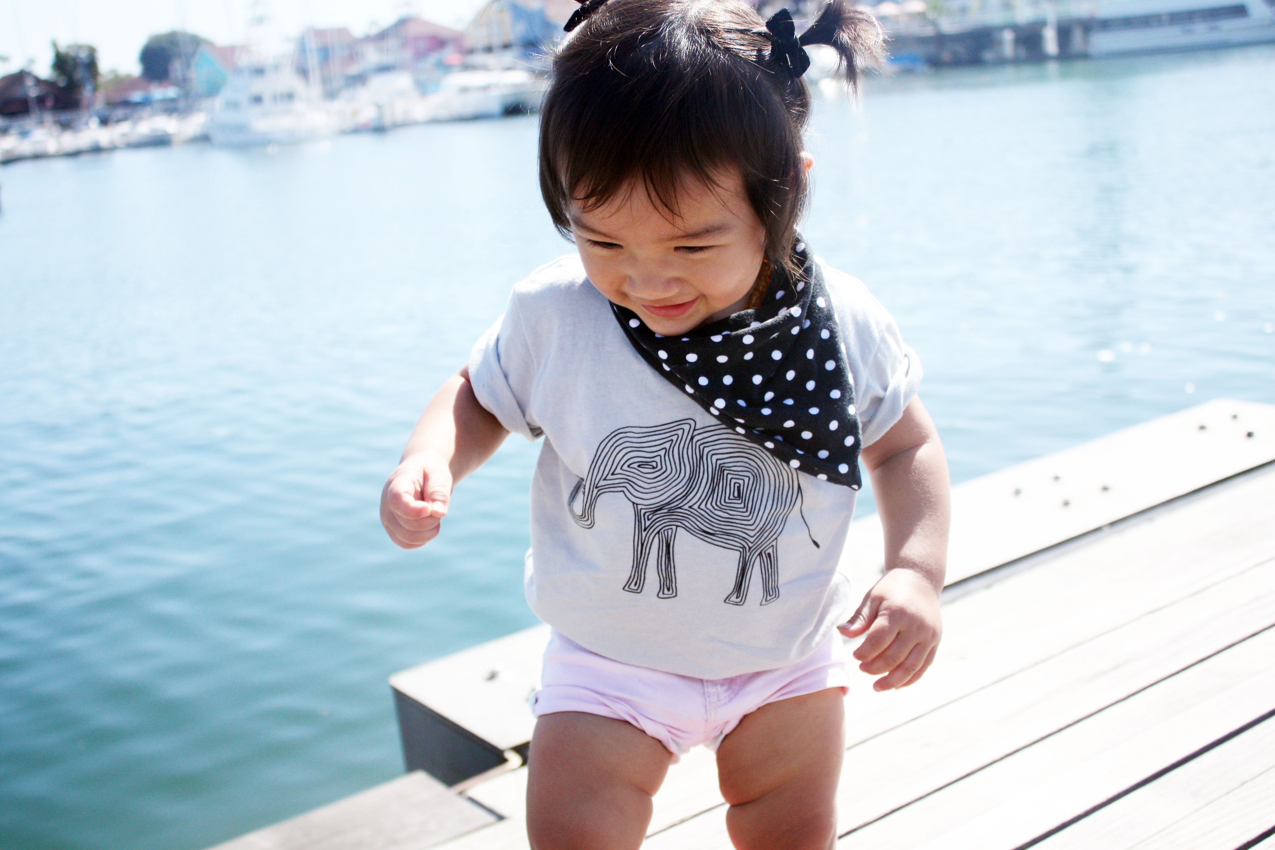 This morning we decided to take advantage of the sunny day and spent time at the Long Beach Shoreline Marina and Aquarium of the Pacific. We recently received this shirt from Moozega‘s new line, one of the awesome shops we are so lucky to be a brand rep for on Instagram and such. If you’ve never heard of them, you really must check them out! The shirts are all printed on American Apparel fine jersey cotton knit material and the print quality is just superior! The ink doesn’t fade in the wash and the designs are gender neutral and wonderfully unique! These are by far some of our favorite printed tees we own and this elephant one was requested by Tanner and I because we just love elephants! As you can see, we tend to put Huntley is shirts sized a bit bigger than her actual size, due to her Winnie the Pooh-like belly!