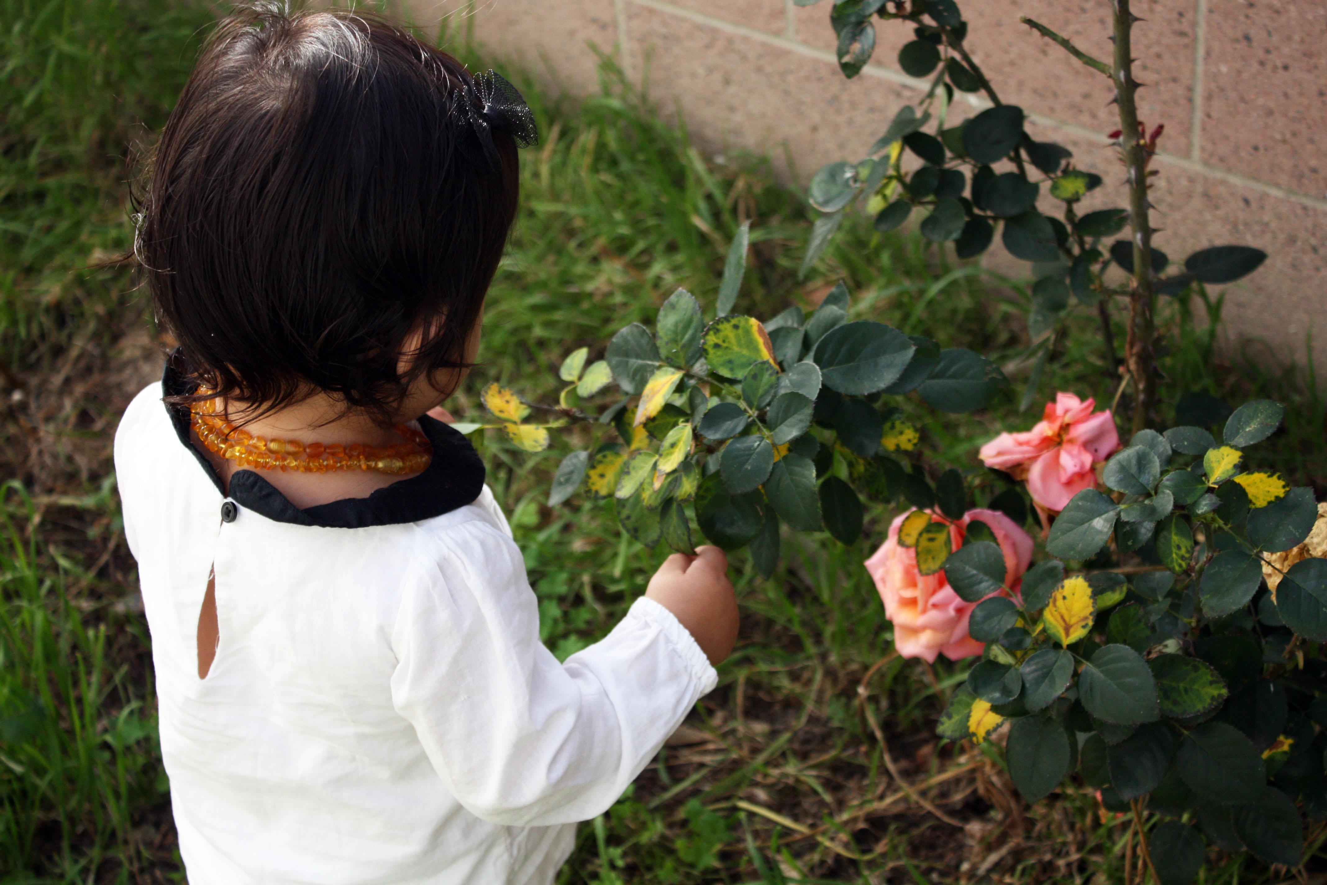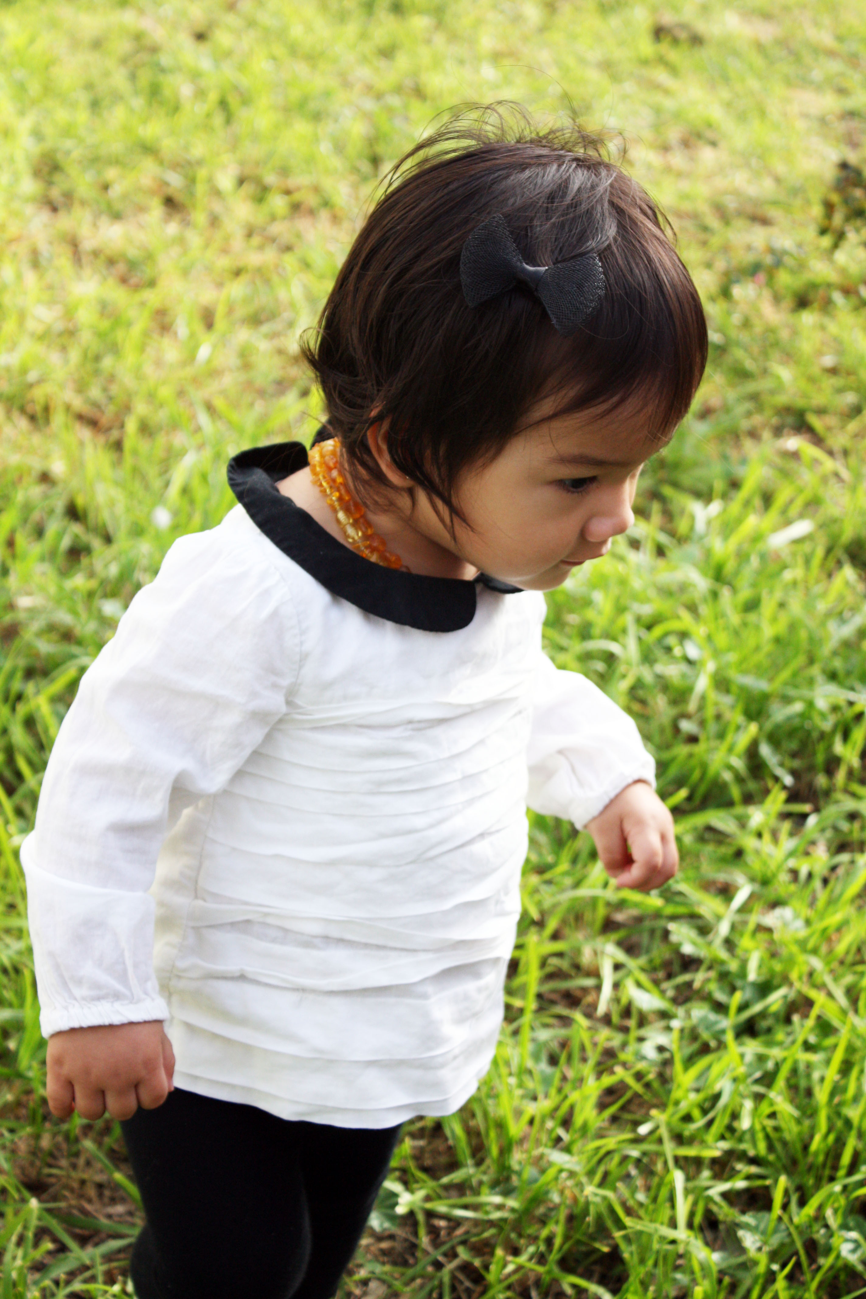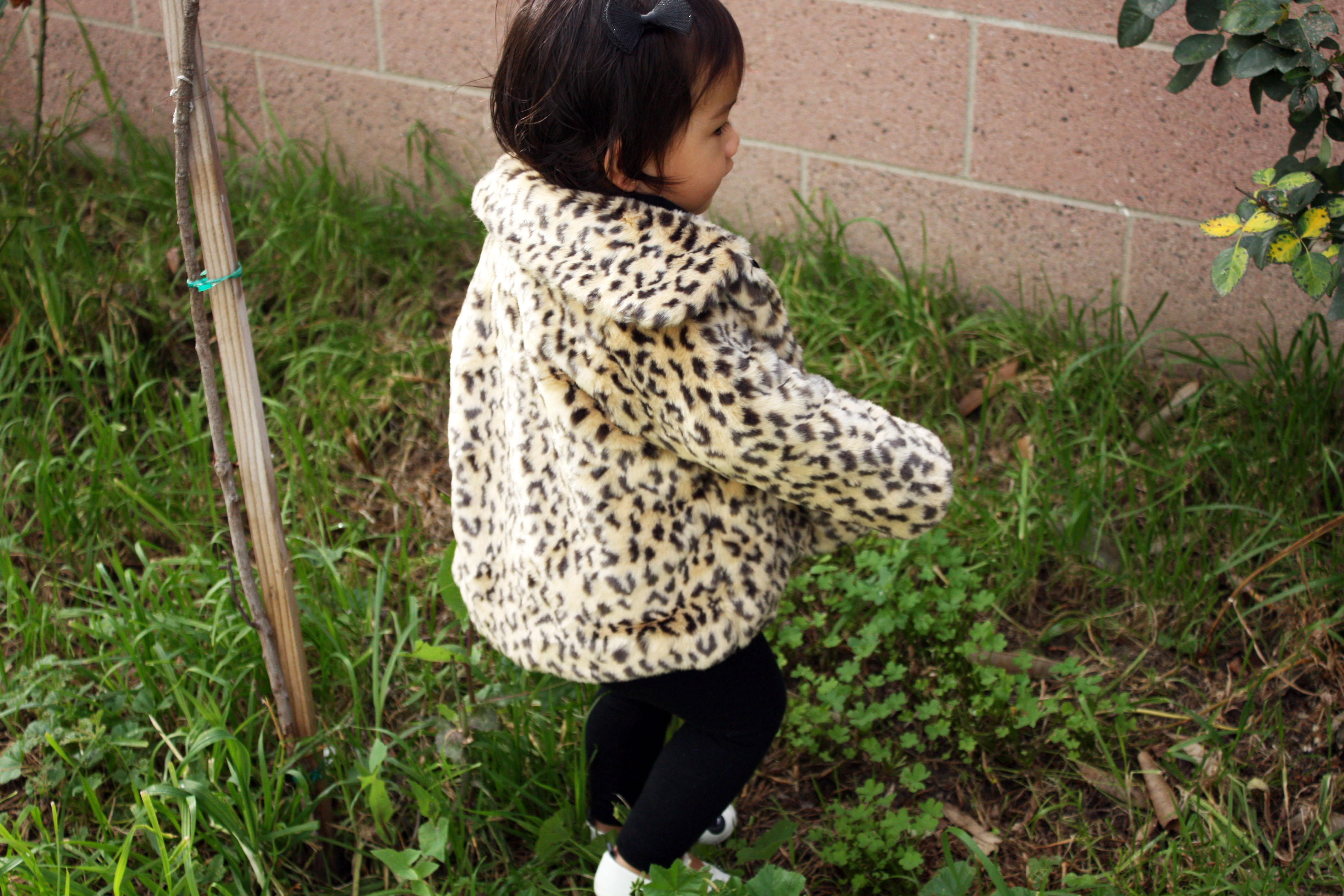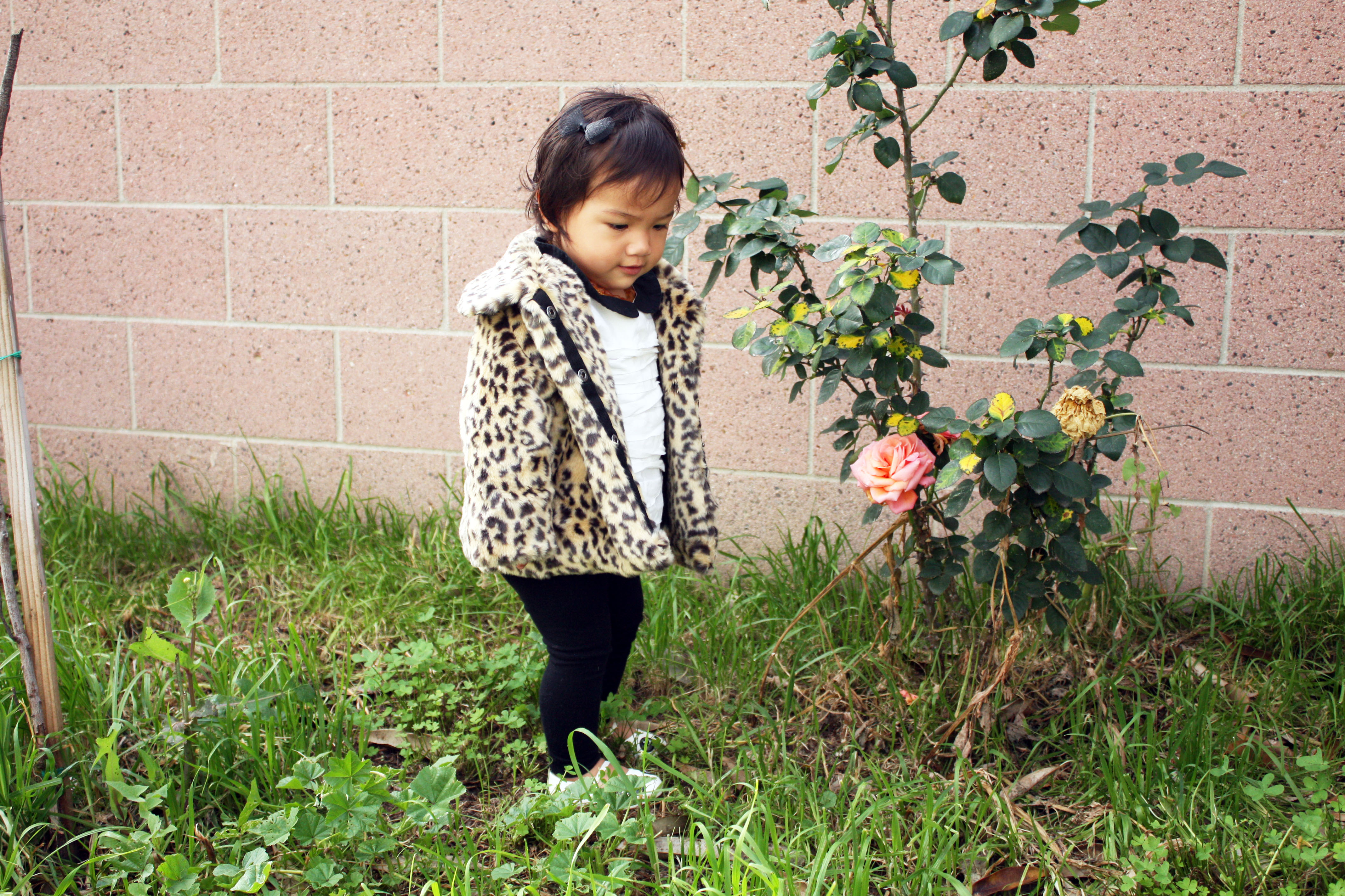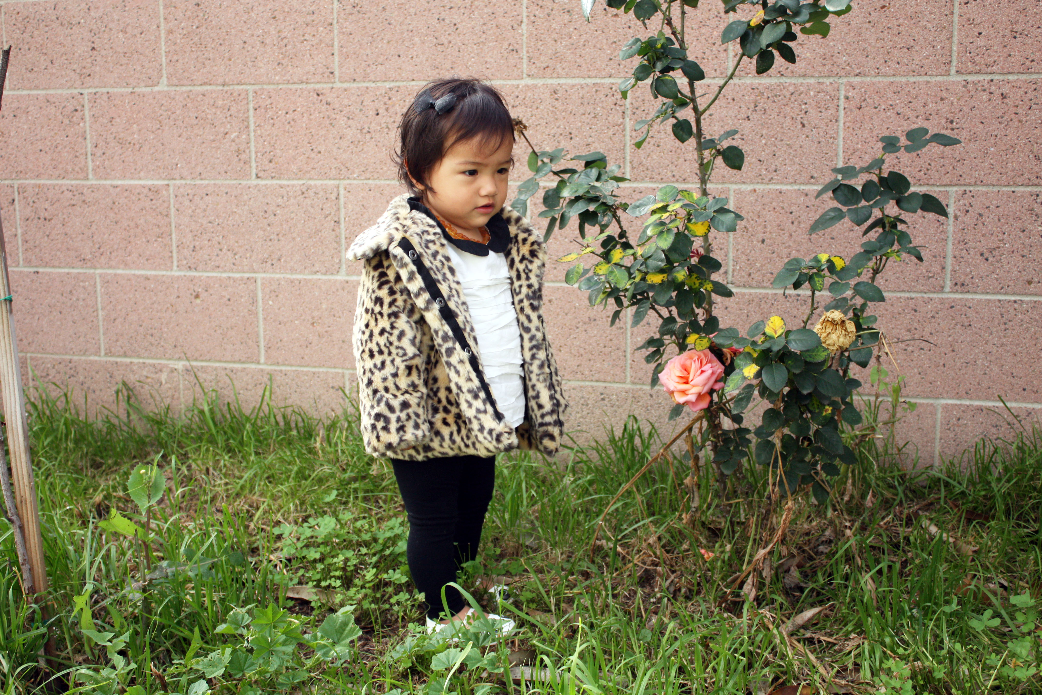 These past few days Huntley has been extra clingy to me and I’m not quite sure whether it’s the teething (a tooth sprung last night!) or if it’s because she can senses that I’m pregnant – it might even be a bit of both. Huntley loves grass and flowers and we like to play in our backyard in the morning when the weather is nice and it also gives us an excuse to get away from the noises coming from the front of our house. Today she actually went and grabbed a coat from her room, which happened to be on the floor already, and walked over to the backyard sliding door saying “mama, dog dog” as if she had gotten ready to go outside and play with Remy. It was particularly funny to see her come out wearing this coat! Considering I’ve never seen her put on her own coat or sweater and it was actually quite warm outside.