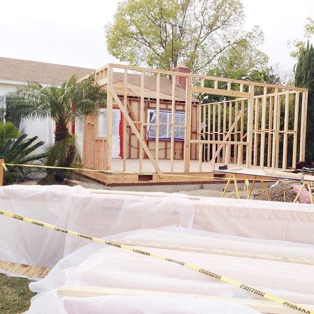 If you already follow me on Instagram you might already have seen the progress that is being made on the room addition. The raised foundation was poured, the floors were framed and recently put down, and now we are working on the walls! Waking up to half the wall in the front of our house being ripped out has been a bit detrimental to Huntley’s sleep patterns, however, we’re all trying to make it work for us. In the meantime, naps are taken in the car or stroller when we are out and about or in Penelope’s nursery when we’re at home.