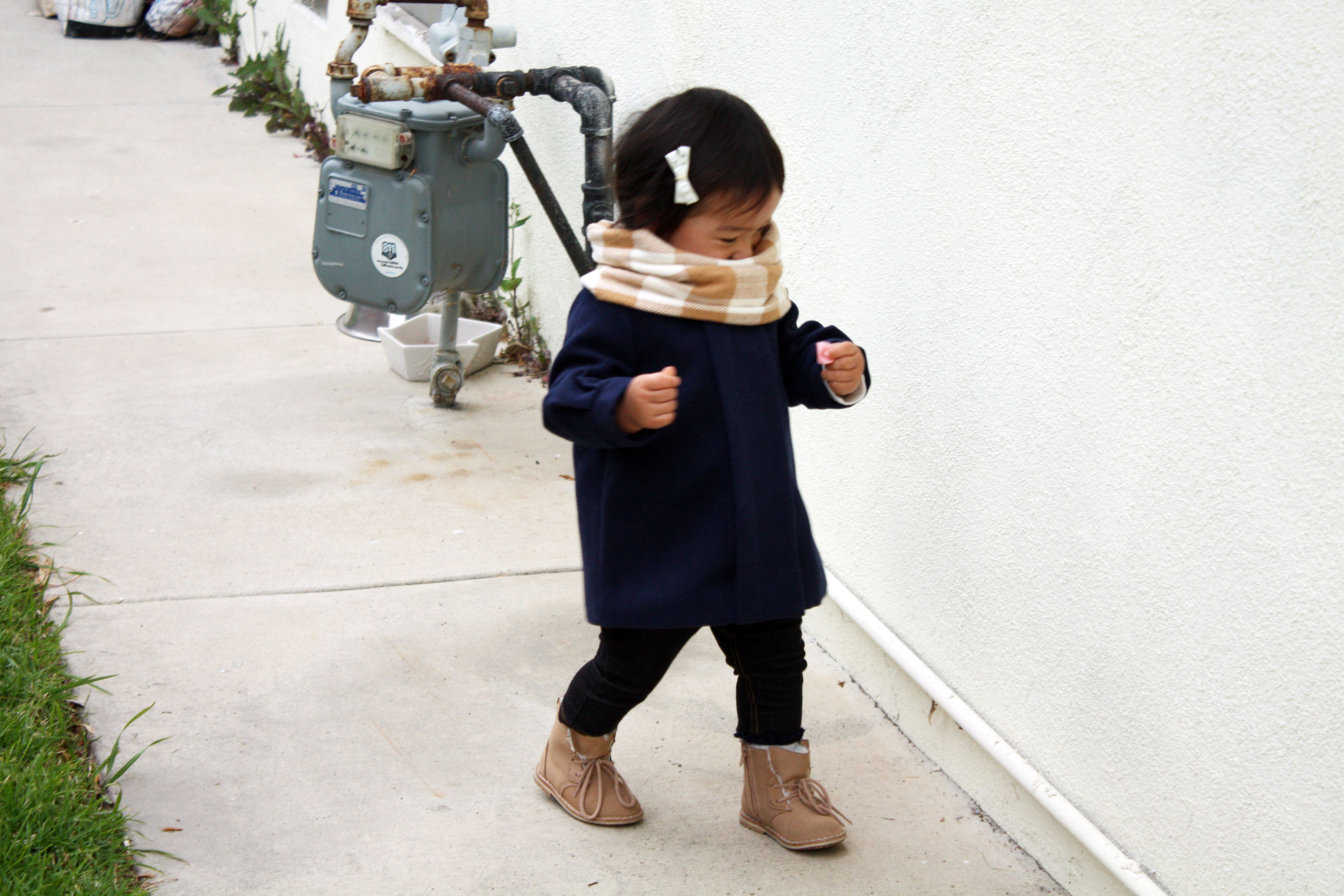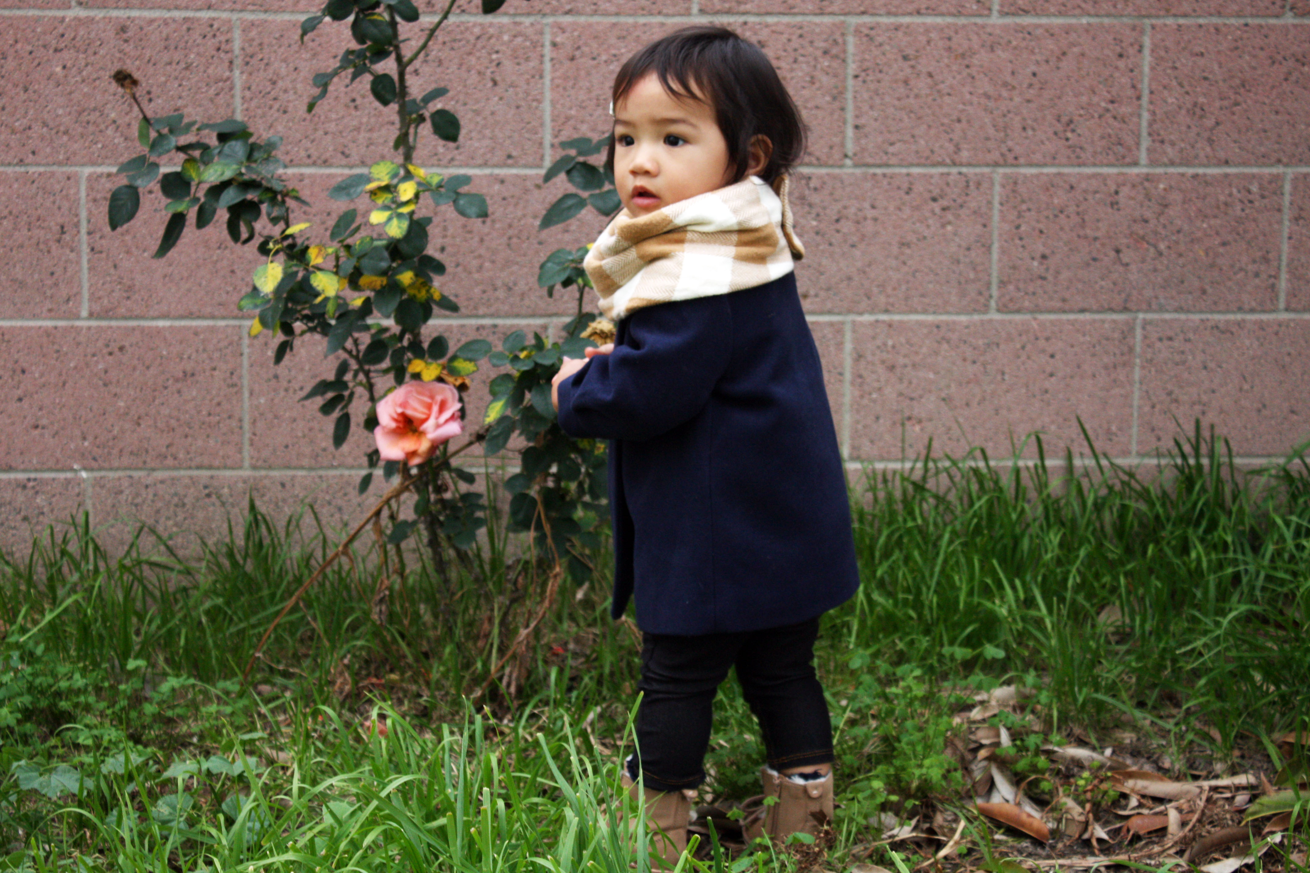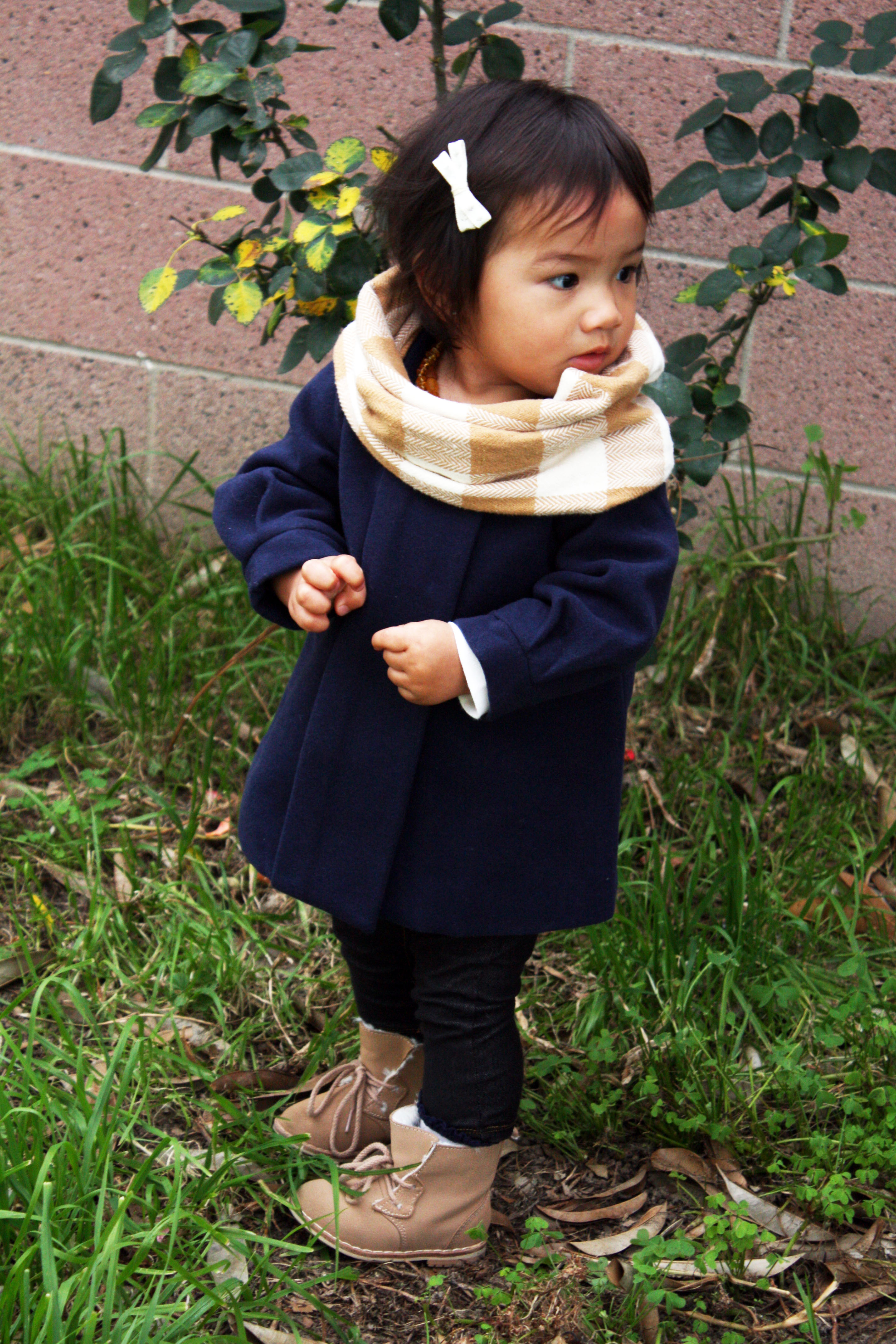 [TooRahLoo Plaid Scarf I Gap Navy Wool Coat I Levi’s Jeggings I Zara Boots I Handmade Hairclip]